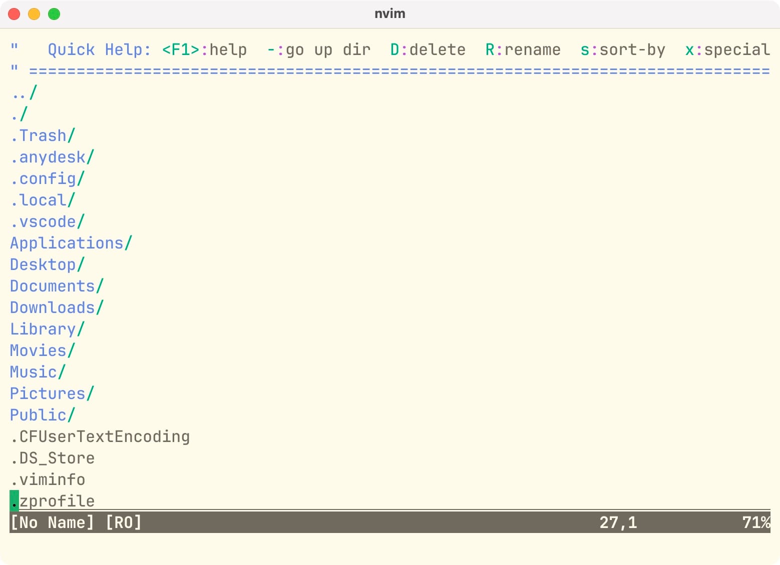 poltora ~: nvim .Открывается дефолтный редактор, который, мягко говоря, IDE особо не напоминает: