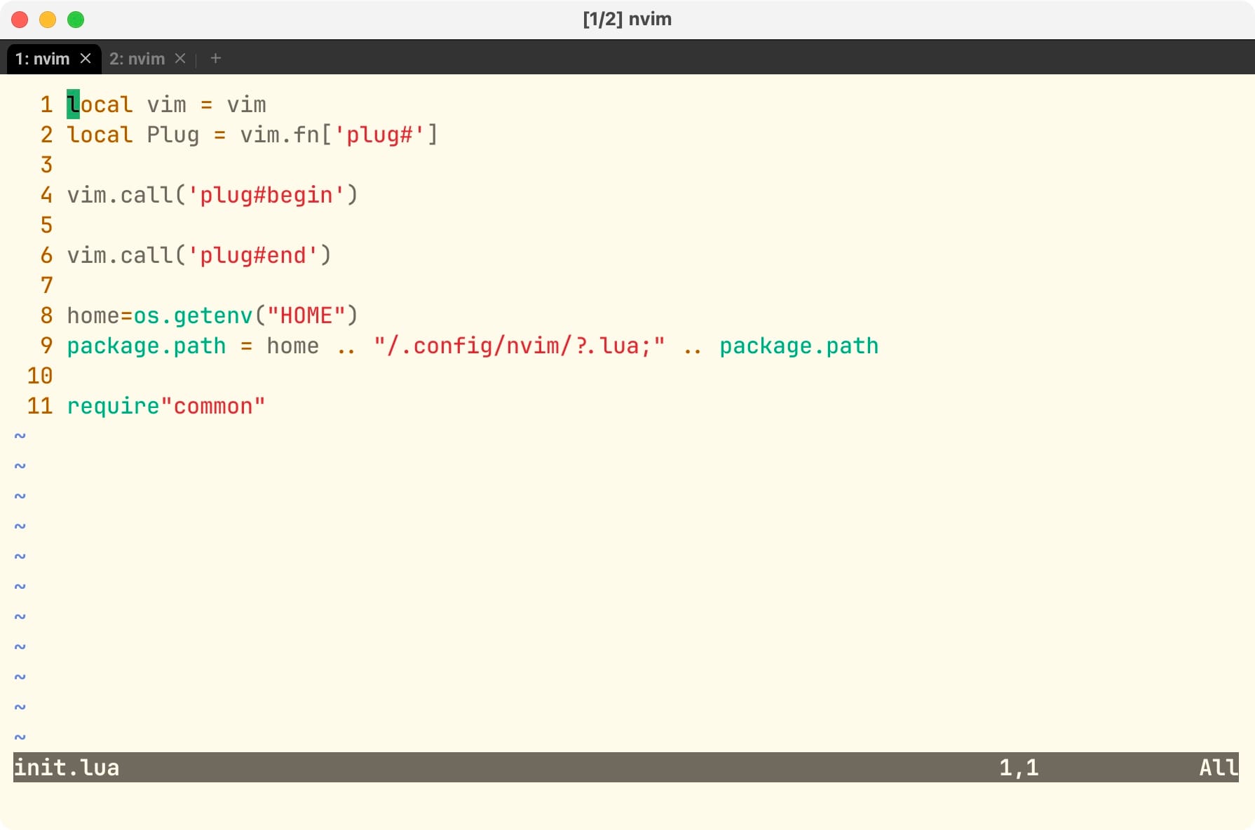 require"common"Перезагружаем nvim, и если видим номера строк - все работает: