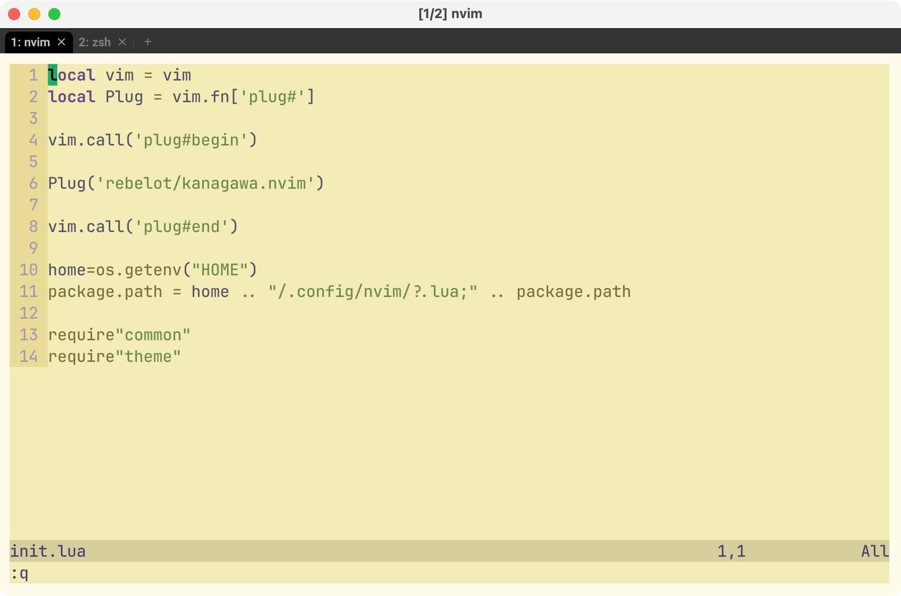 Нажимаем :wqa, перезапускаем терминал и вот что получается: