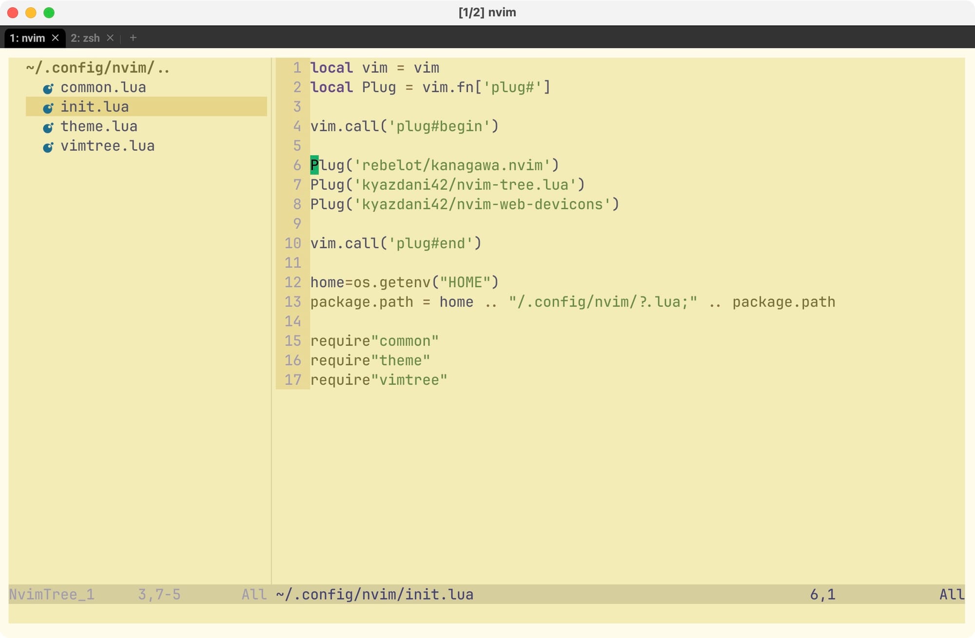 Чтобы не потеряться в наших конфигах, я буду добавлять все настройки и конфигурацию для каждого плагина в отдельный lua-файл, который будет лежать рядом с init.lua. Давай создадим файл common.lua и пропишем туда ряд базовых настроек.